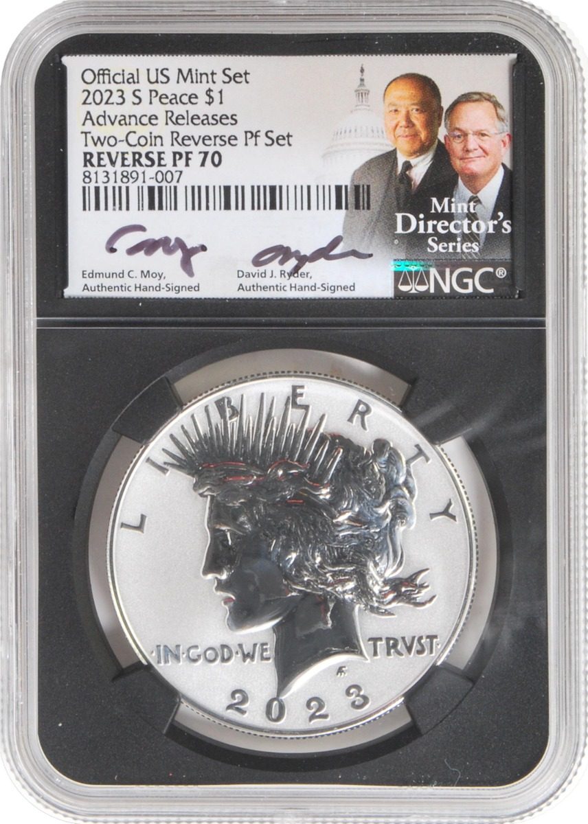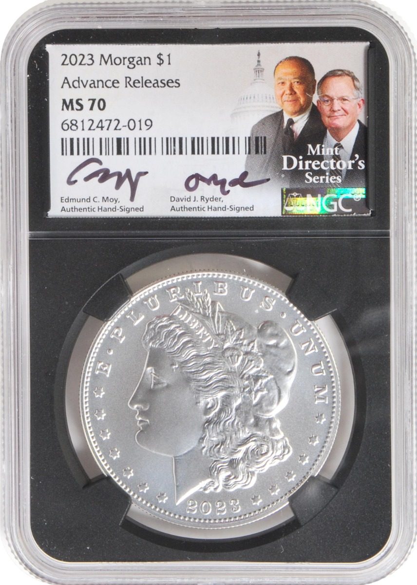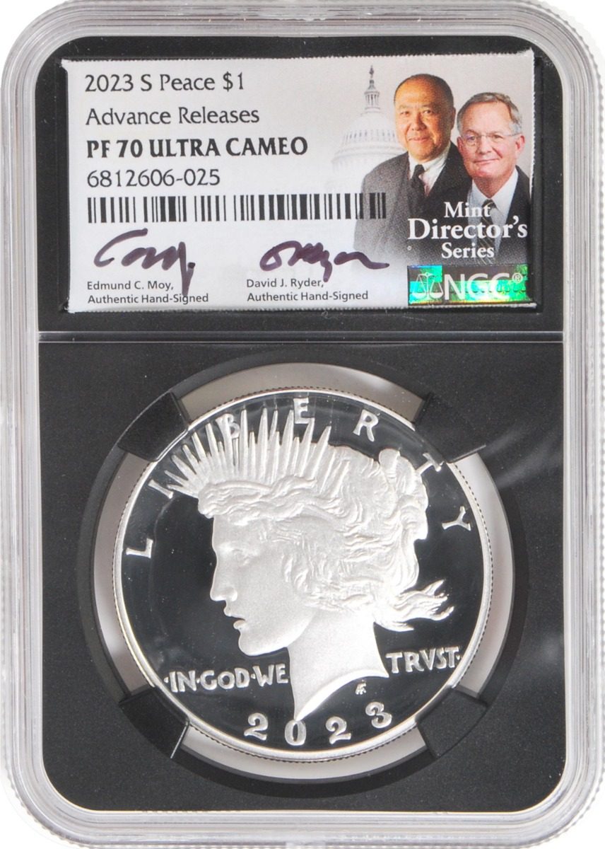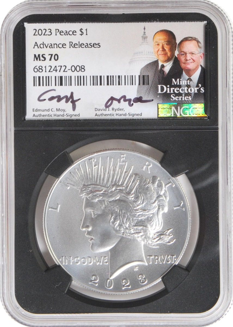 Authenticity and uniqueness are key to how valuable collectible precious metals coins are. Each coin from the NGC Mint Directors Series is authentically hand signed by Edmund C. Moy, and David Ryder, two of only thirty-seven people to have held the esteemed position of United States Mint Director since its founding in 1872. Mint Director David Ryder started the U.S. Mint Advance Release program and implemented the 1921 Silver Dollar Anniversary Act, which authorized the mintage of Morgan and Peace Dollars in 2021 for their centennial anniversary.