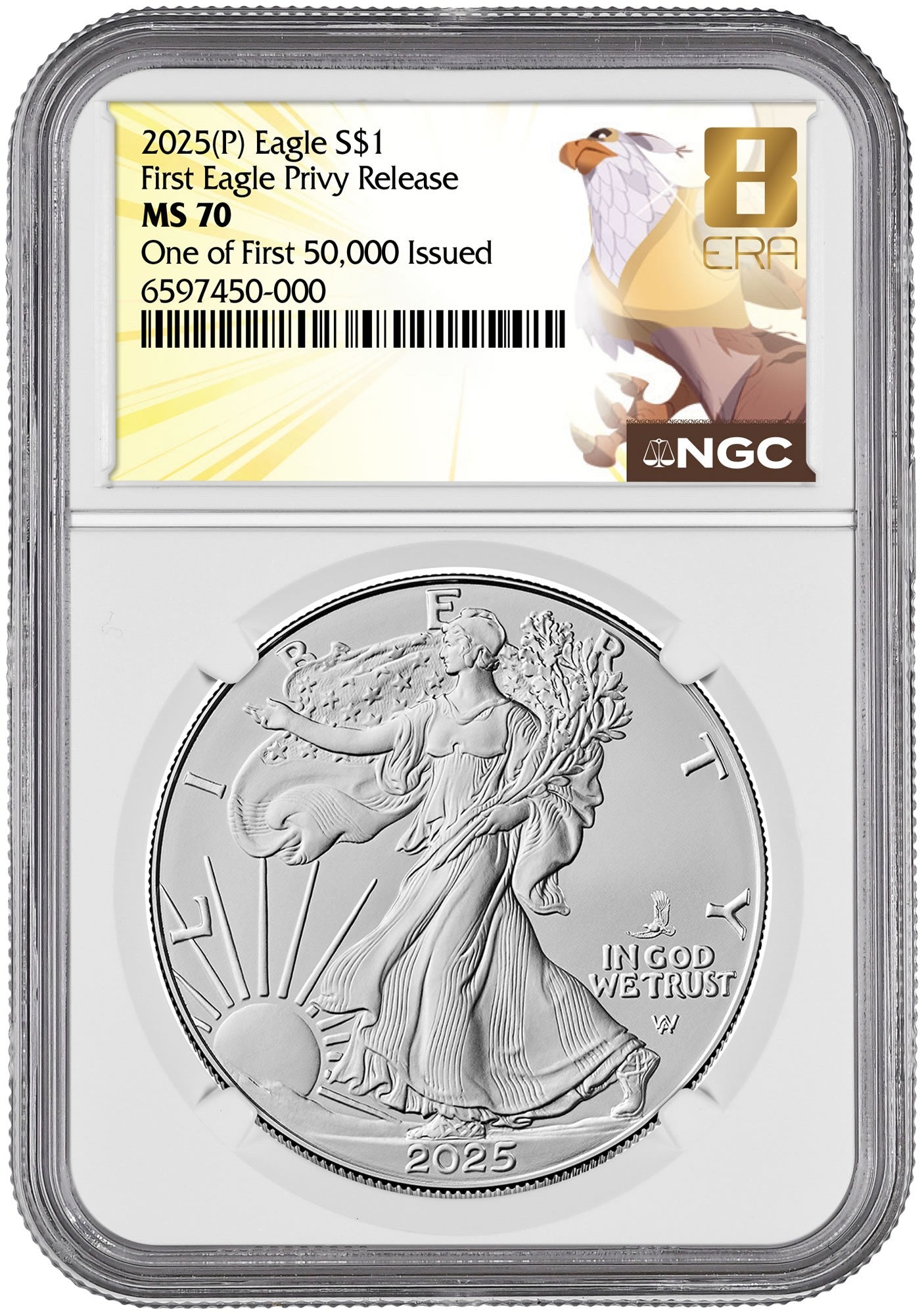 Another exciting release from the U.S. Mint: a 2025 American Silver Eagle bullion coin featuring a special eagle privy mark! This anticipated release, set for early 2025 with an expected very limited mintage, is guaranteed to captivate audiences, building upon the success of previous privy-marked Silver Eagles like the 2020 V75 proof coin and the 2024 Star Privy bullion coin. The eagle privy will add a layer of exclusivity to this already iconic series..