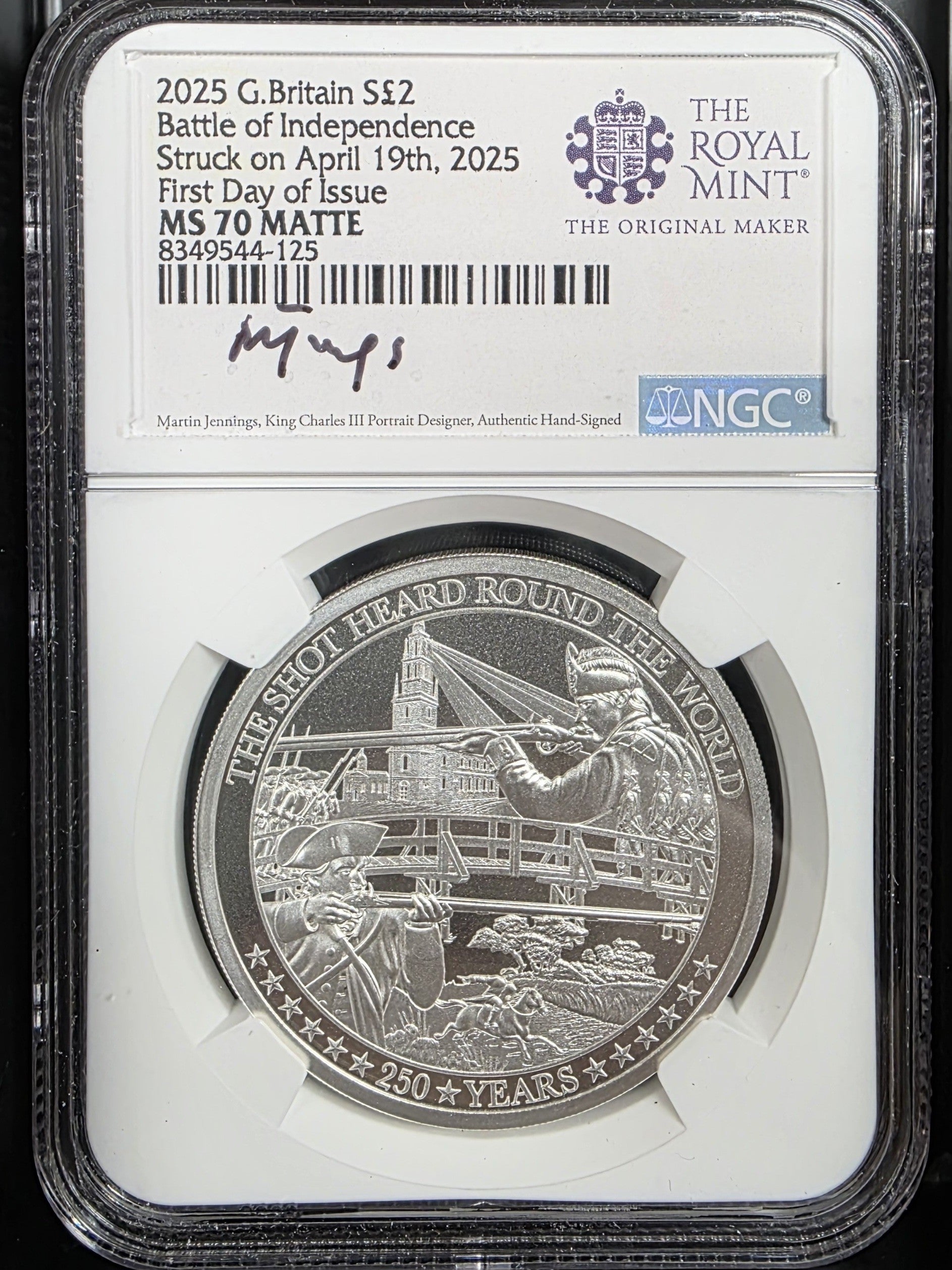 Now, exactly 250 years later ... TO THE DAY, only 1775 special release silver coins were struck on April 19, 2025! We are excited to offer these beautiful coins with individually numbered certificates to our Preferred Clients at an incredible value. Each piece comes certified in perfect Proof grade 70 and is individually hand-signed by the coin's artist, Martin Jennings. Call now to acquire your irreplaceable piece of American history!
