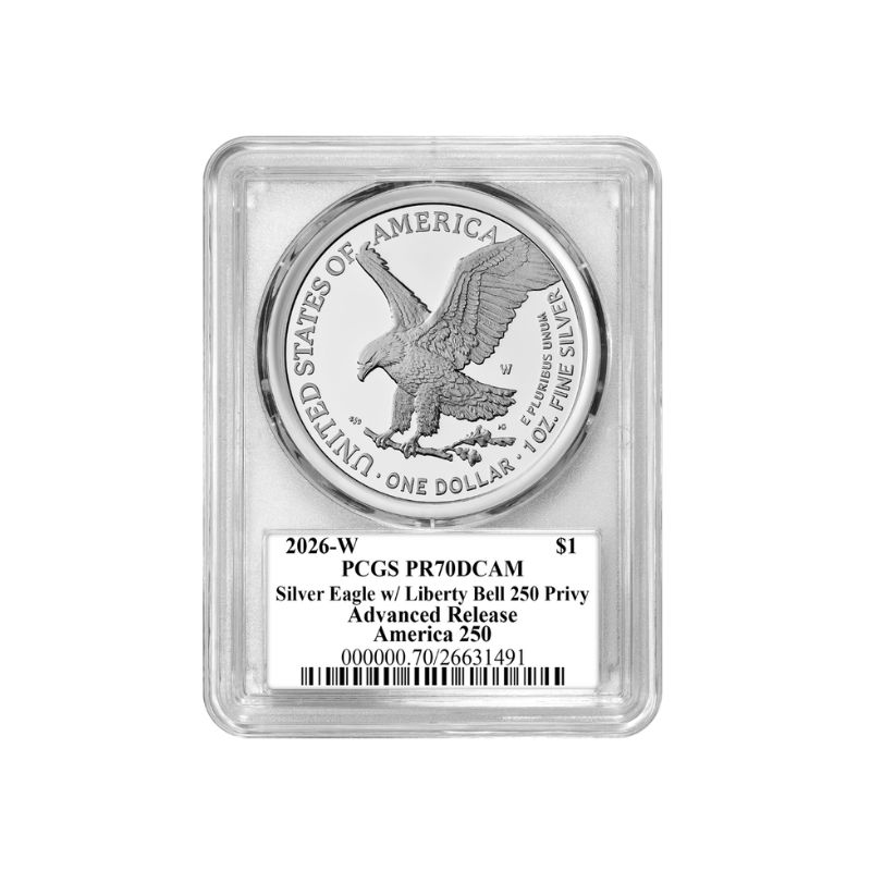 Prepare for a numismatic milestone 250 years in the making. The 2026 W $1 1 oz 250th Anniversary Liberty Bell Privy Proof Silver Eagle commemorates both America’s semi quincentennial and the 40th anniversary of the American Silver Eagle—and makes history as the first dual-date Silver Eagle ever struck.