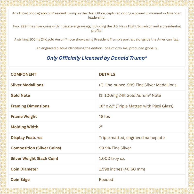 Whether you're a lifelong collector, a proud patriot, or someone who appreciates finely crafted historical tributes, this framed collectible is a remarkable addition to any collection—and a conversation piece for generations to come.